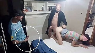 Pegadinha com esposa com olhos vendados e amigo entra no meio da transa estava amigo dentro do guarda roupas