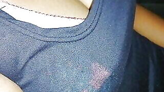 in the bedroom my indian girl playing with i am breasts and enjoying my pussy