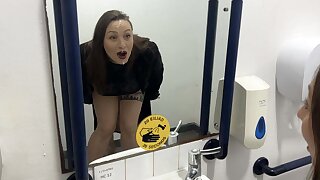 Cheating wife fucks employee in pub toilet while husband waits outside and gets a surprise load all over her face