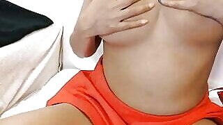 in the bedroom my indian girl playing with i am breasts and enjoying my pussy